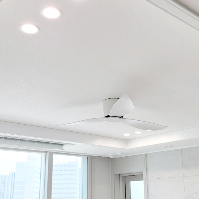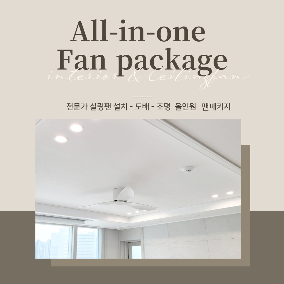 실링팬 설치 - 우물천장 실크도배 - 다운라이트 조명 설치